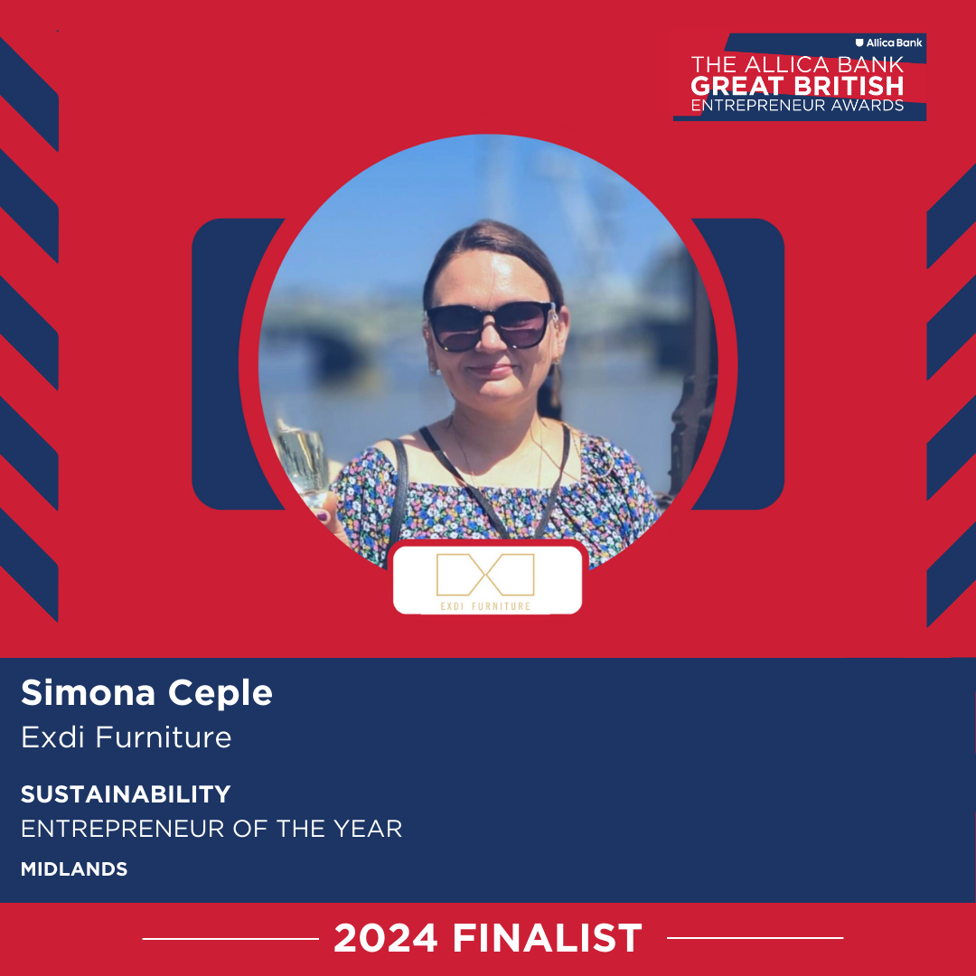 I am thrilled to announce that Exdi Furniture it has been shortlisted for the 2024 Allica Bank Great British Entrepreneur Awards. Recognised in the Sustainability category.