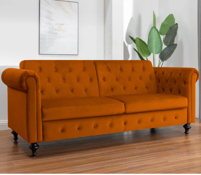 3 SEATER CHESTERFIELD STYLE VELVET SOFA BED IN ORANGE