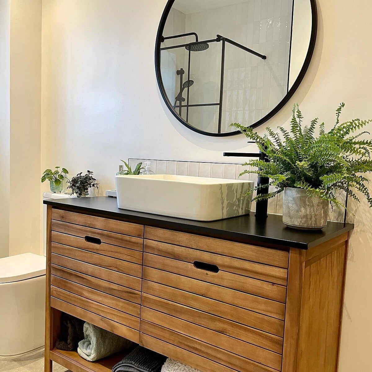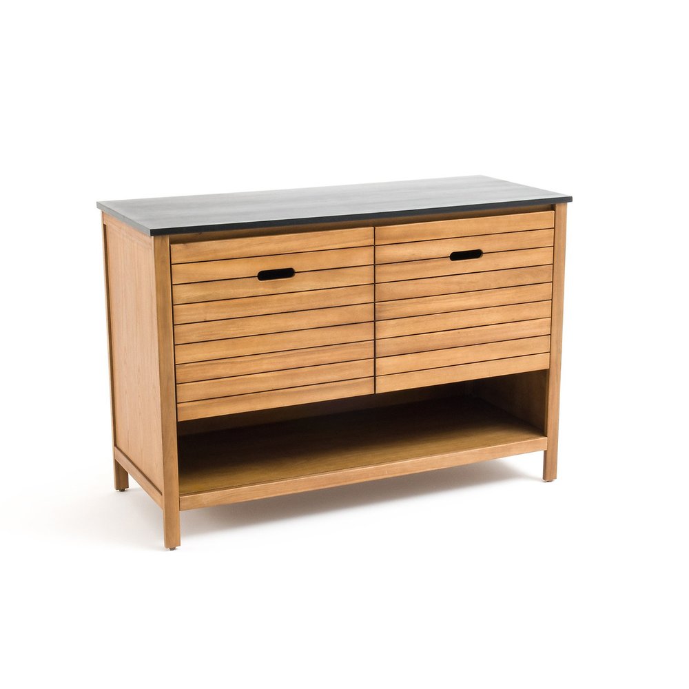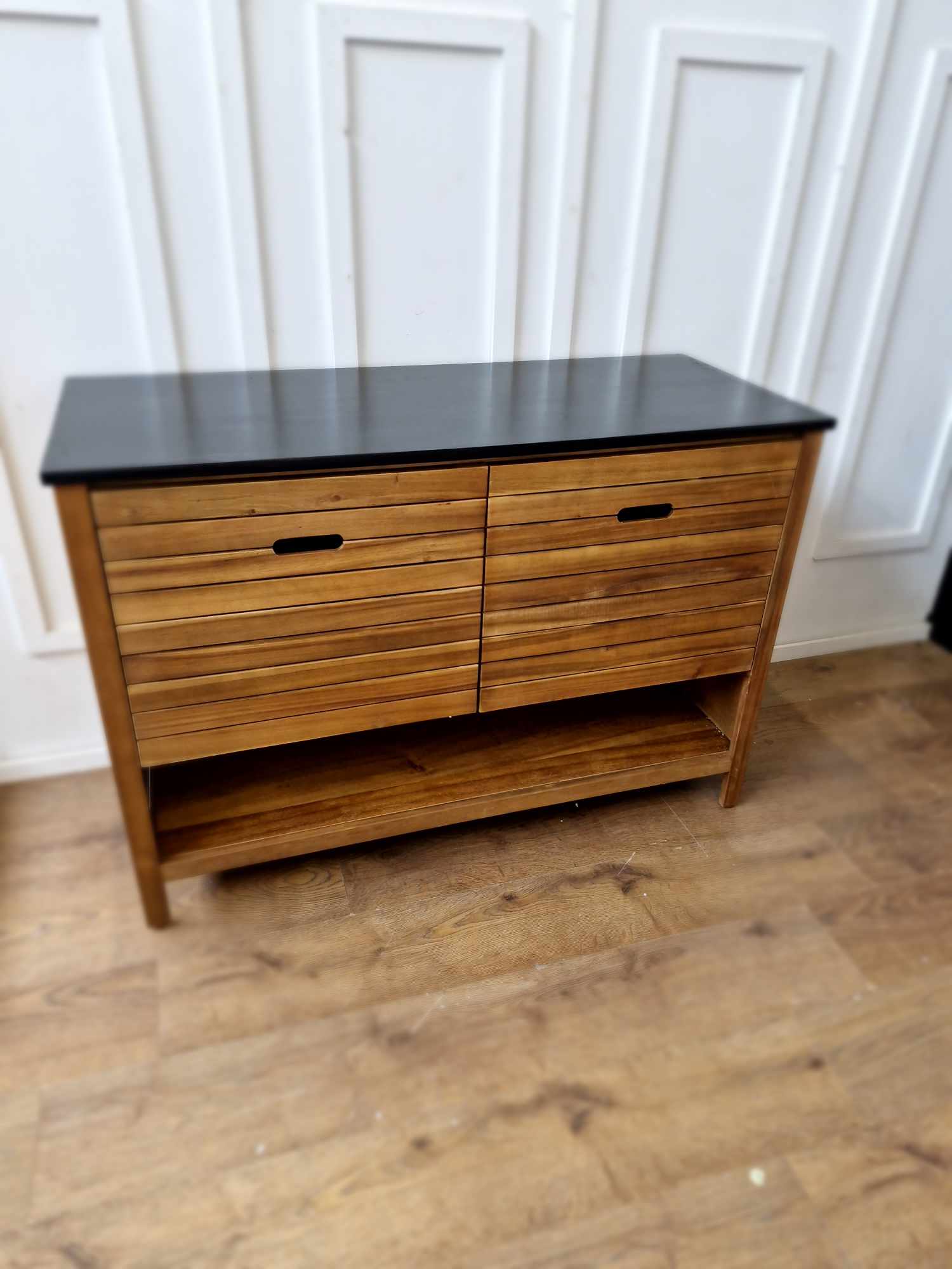 Acacia and Black Wood Bathroom Vanity Unit / La Redoute Saturne RRP £450