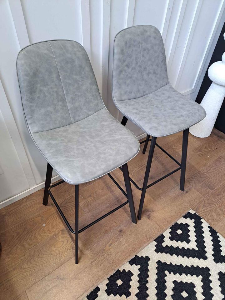 Bar Stools Set of 2 ¦ Grey Faux Leather and Black Metal