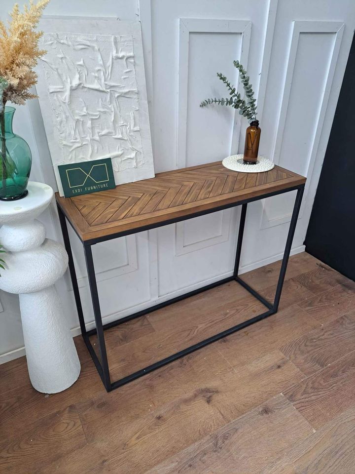 Console Table Parquet Wood and Metal ¦ Herringbone Style Solid Pine Top
