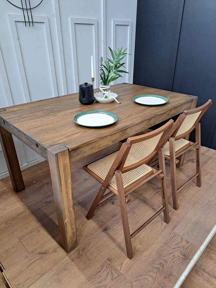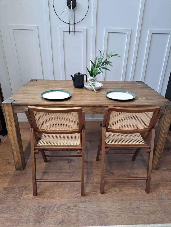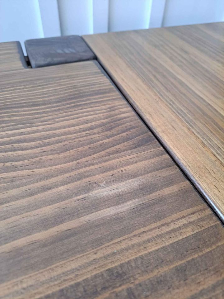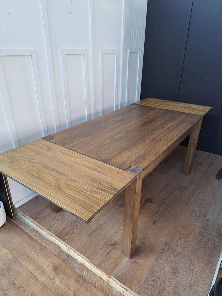Great quality and condition, some surface imperfectionsSolid pine wood ( teak effect stain)