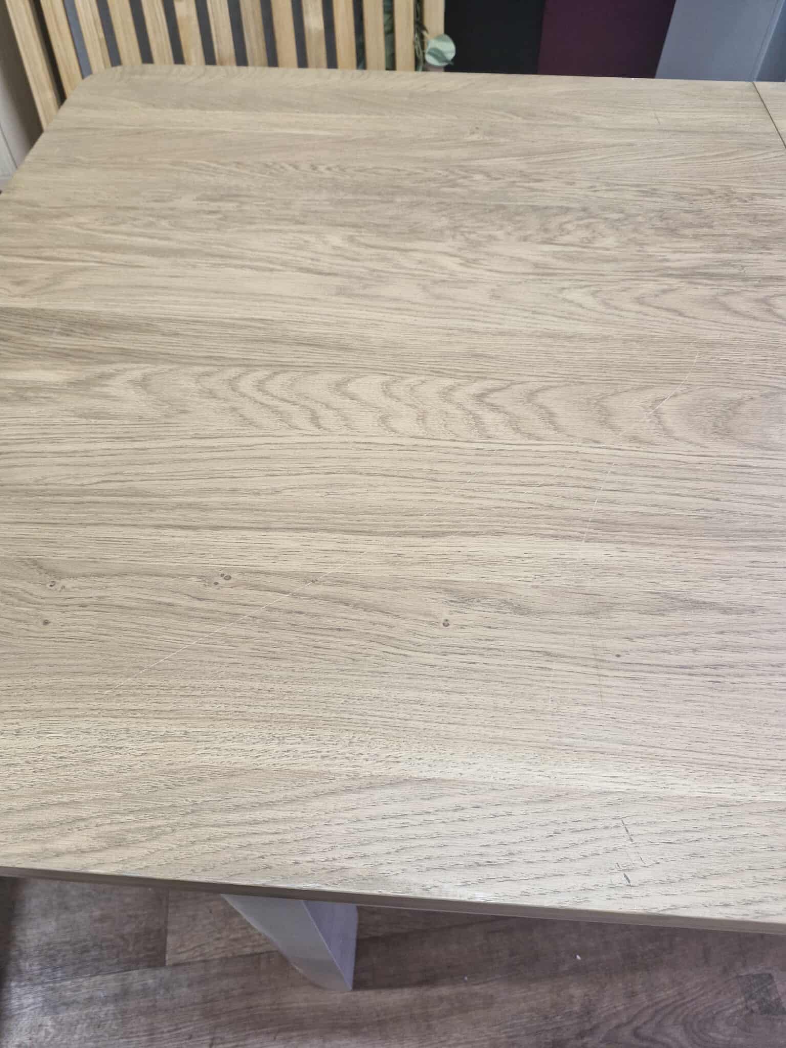 Some surface imperfections on the top, chip on the edge and some damage under the top (would advice not to store extending board but this does not effect tables stability or use)