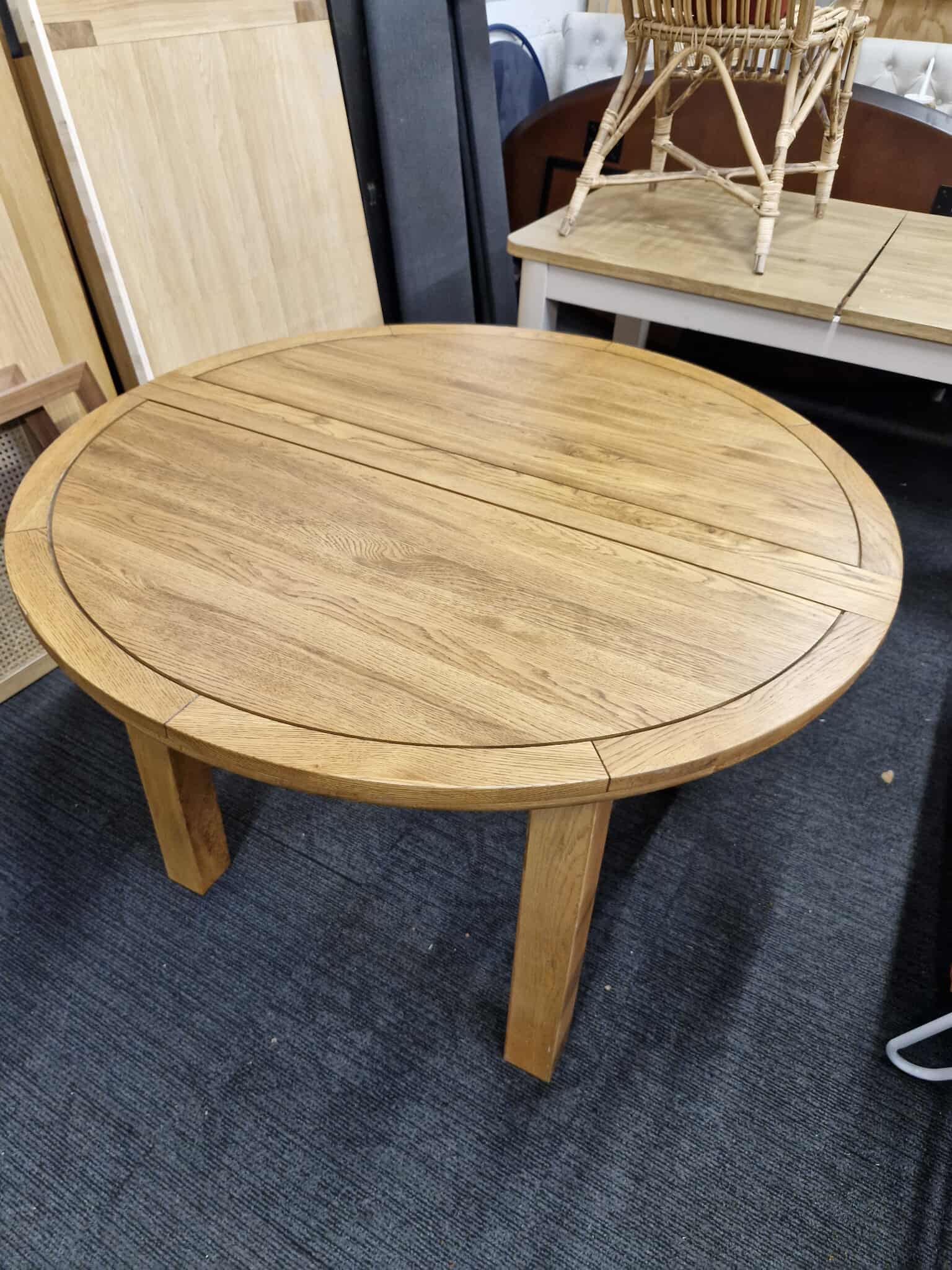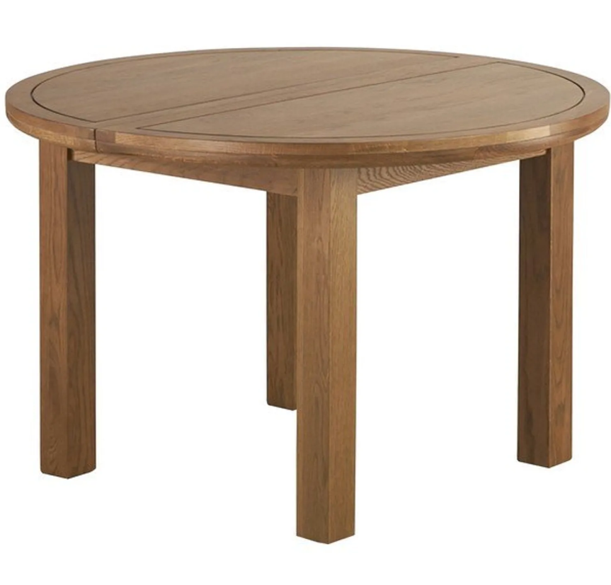 Extending Round Dining Table - Rustic Solid Oak / Oak Furnitureland KNIGHTSBRIDGE