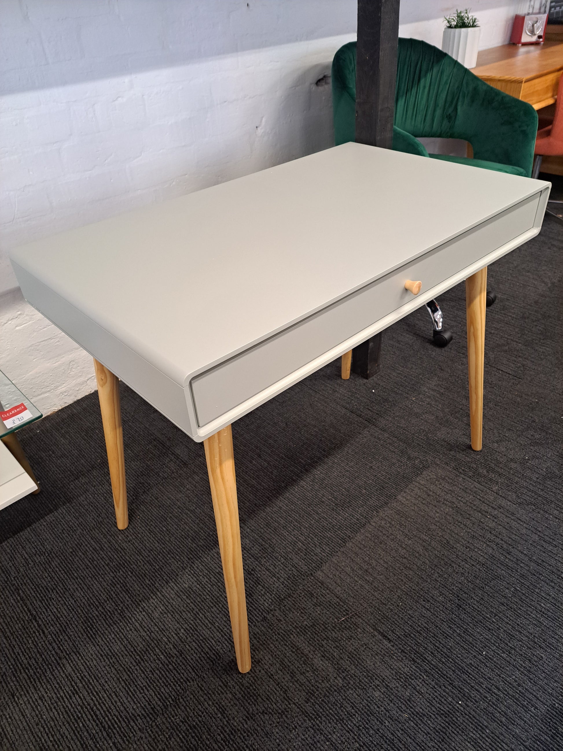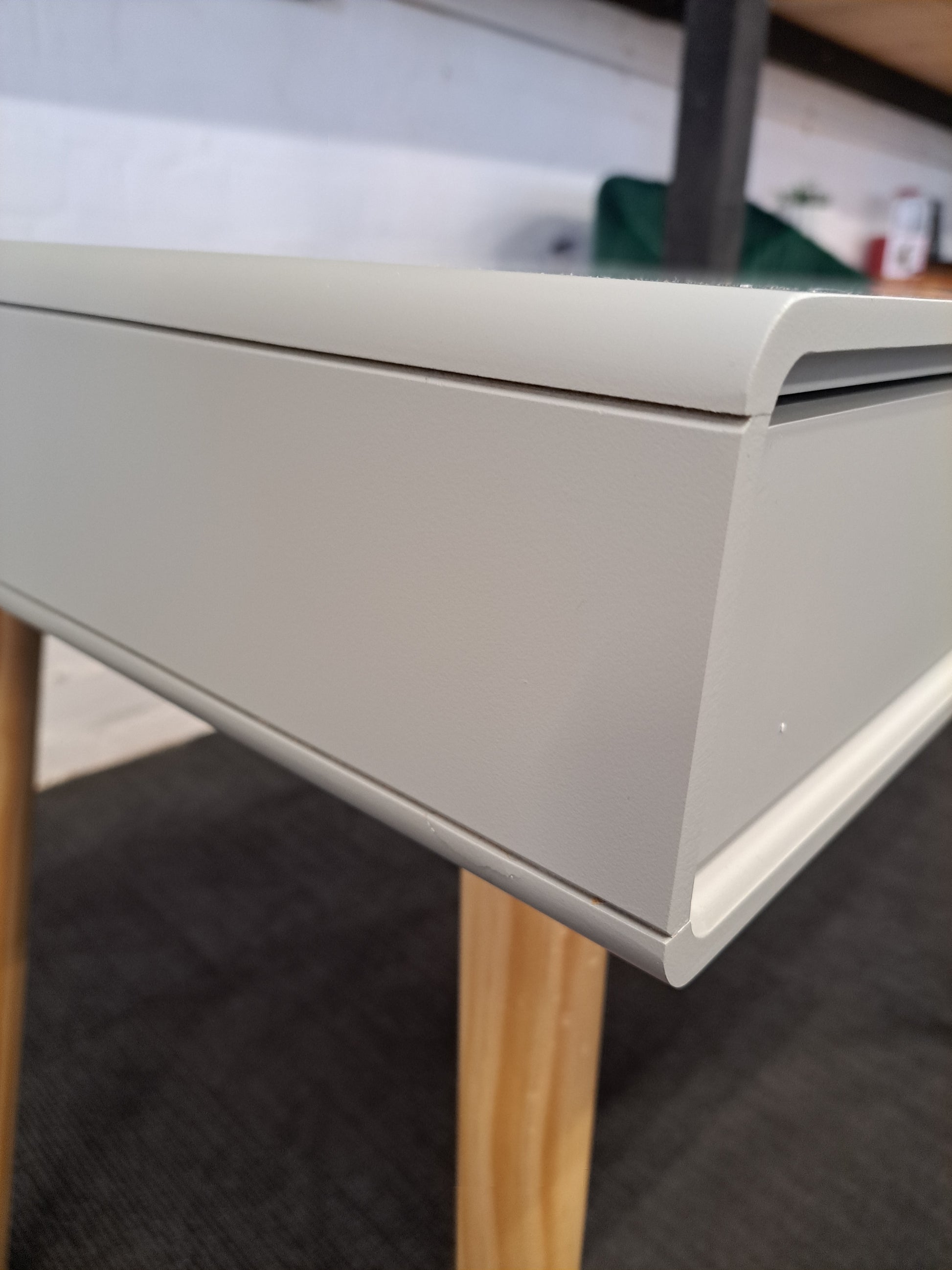 Grey and wood desk
