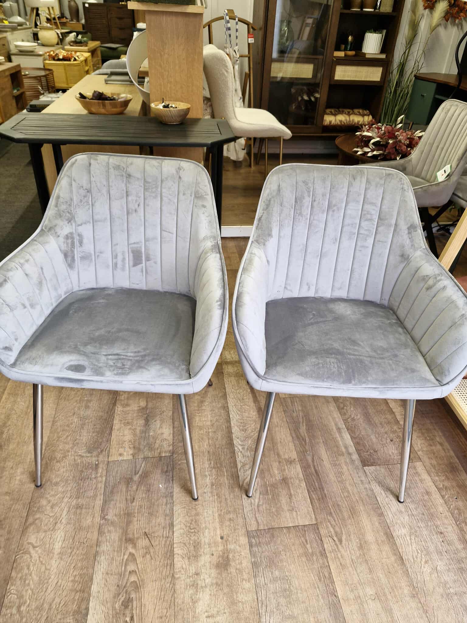 Grey Velvet and Silver Effect Metal Legs Dining Chairs / Set of 2