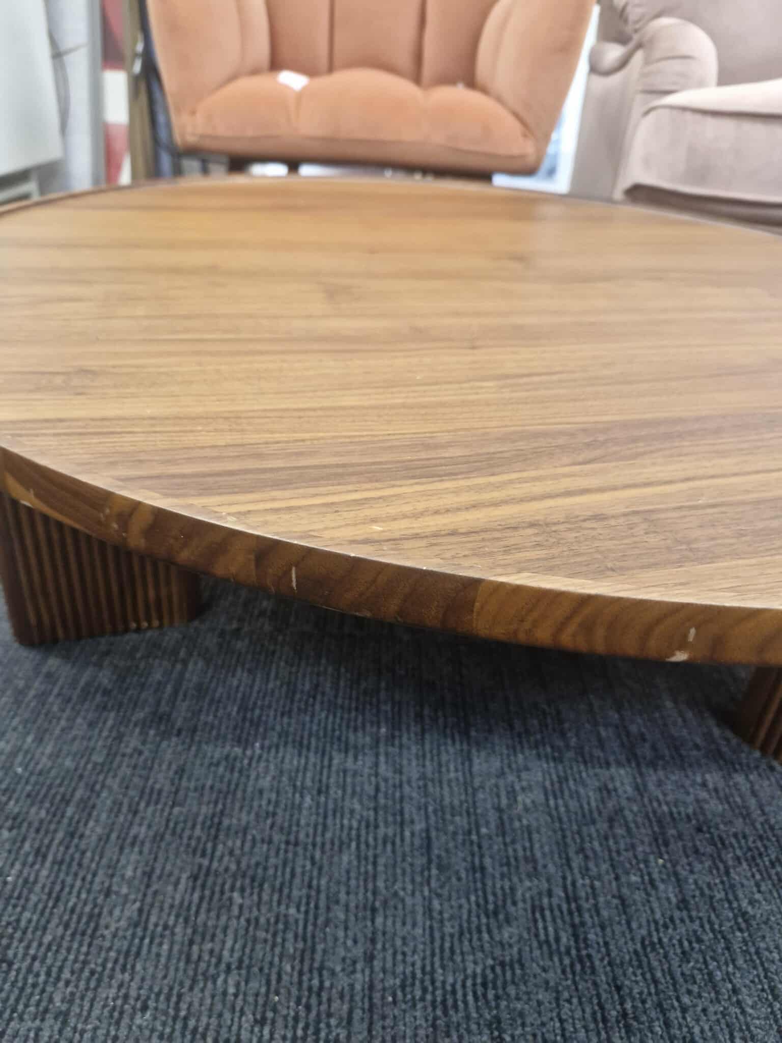 Large Round Solid Walnut Coffee Table / Tray top and ridge legs