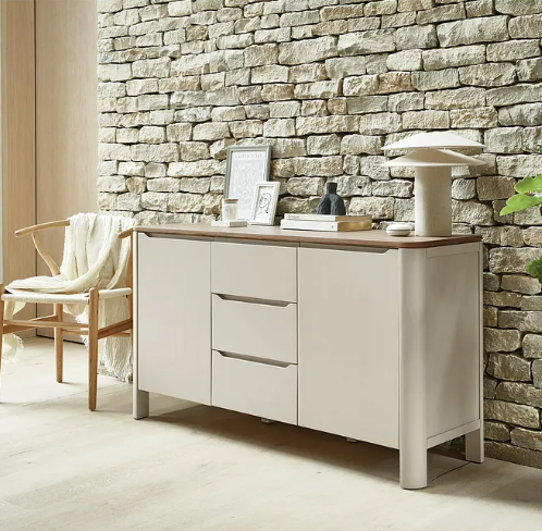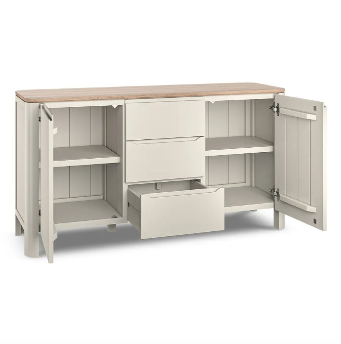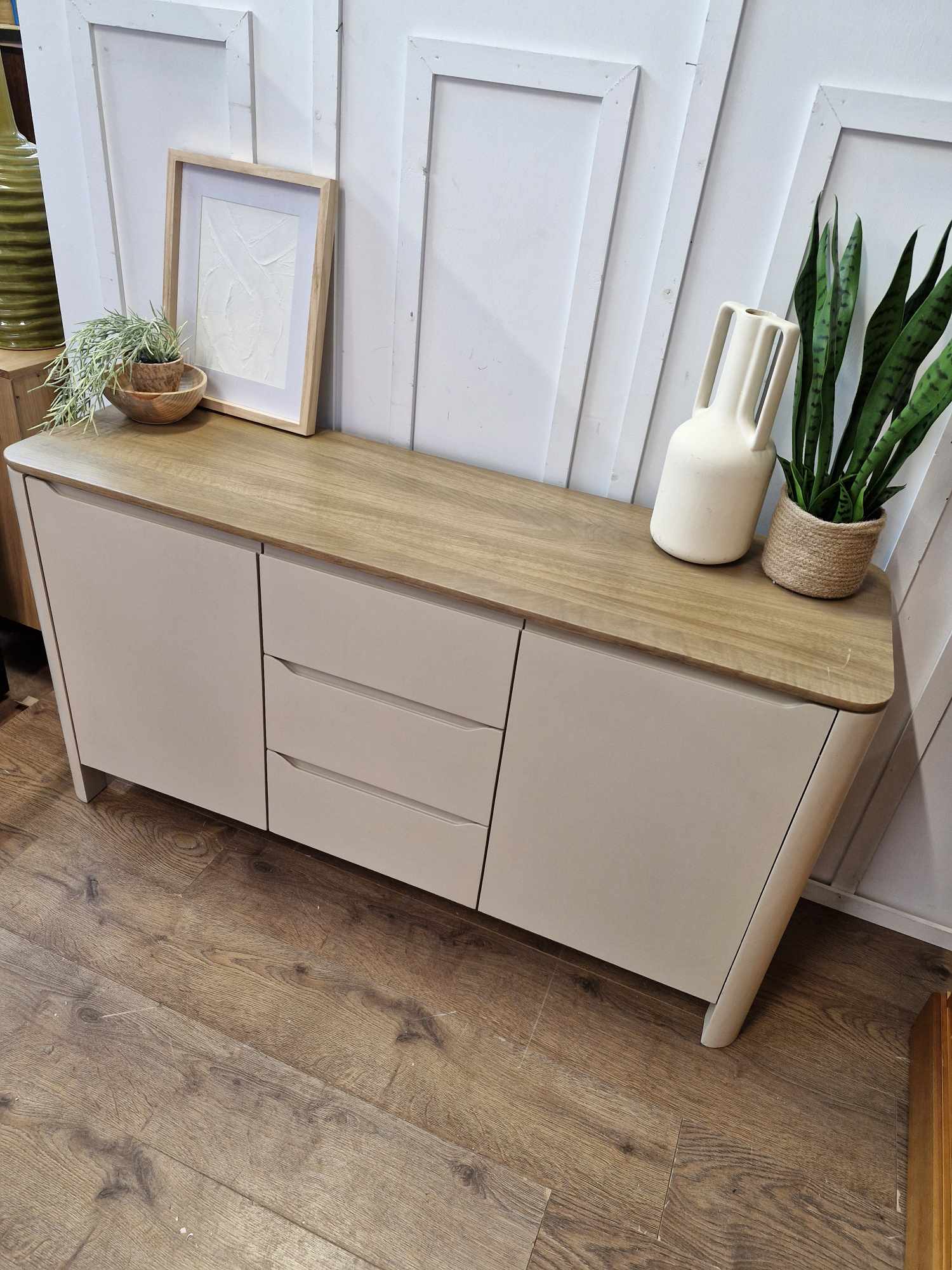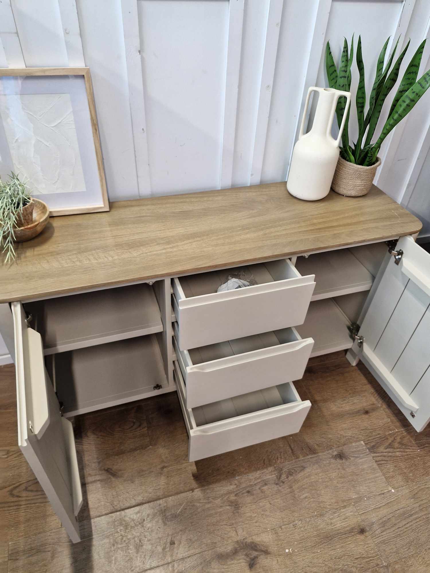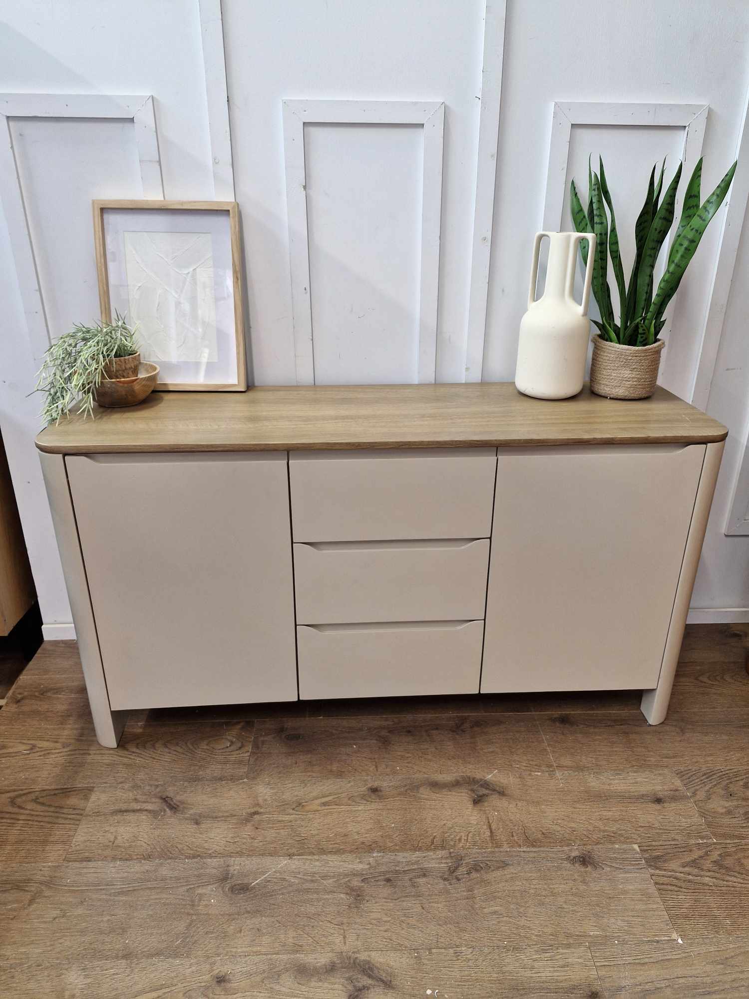 Stylish and functional – this large sideboard from Oak Furnitureland’s Otto range features a smoked oak finish paired with a soft cashmere painted base. A modern classic with a calm, neutral palette that suits both contemporary and traditional interiors.