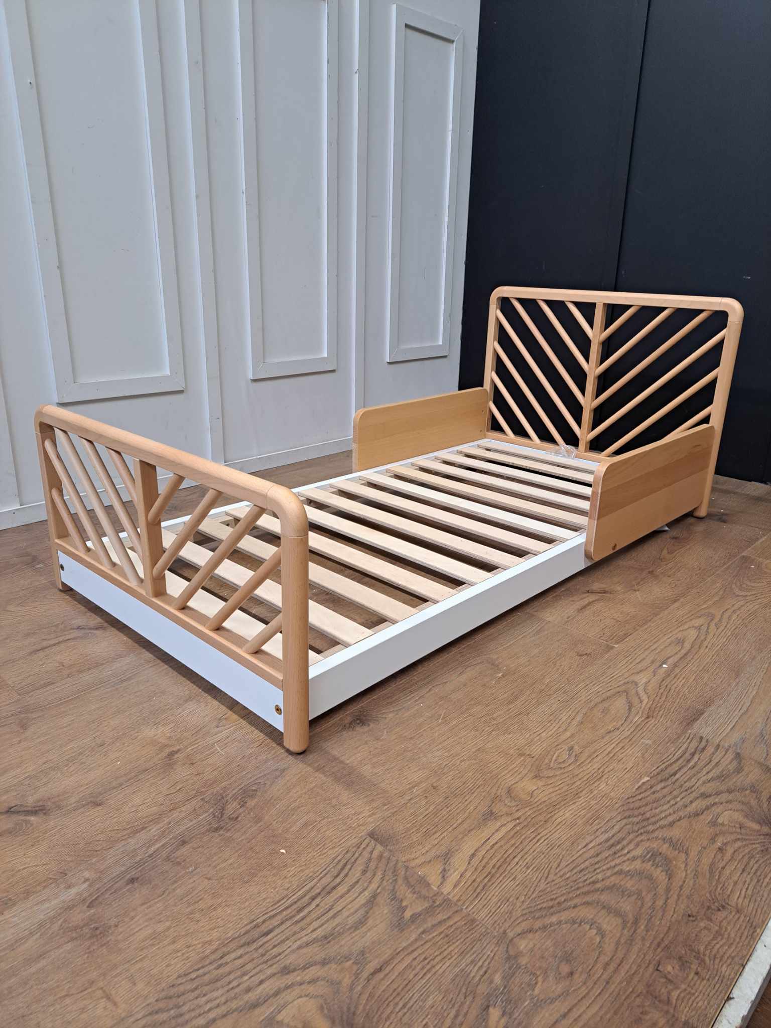 Solid beech and MDF, Pine slatted base