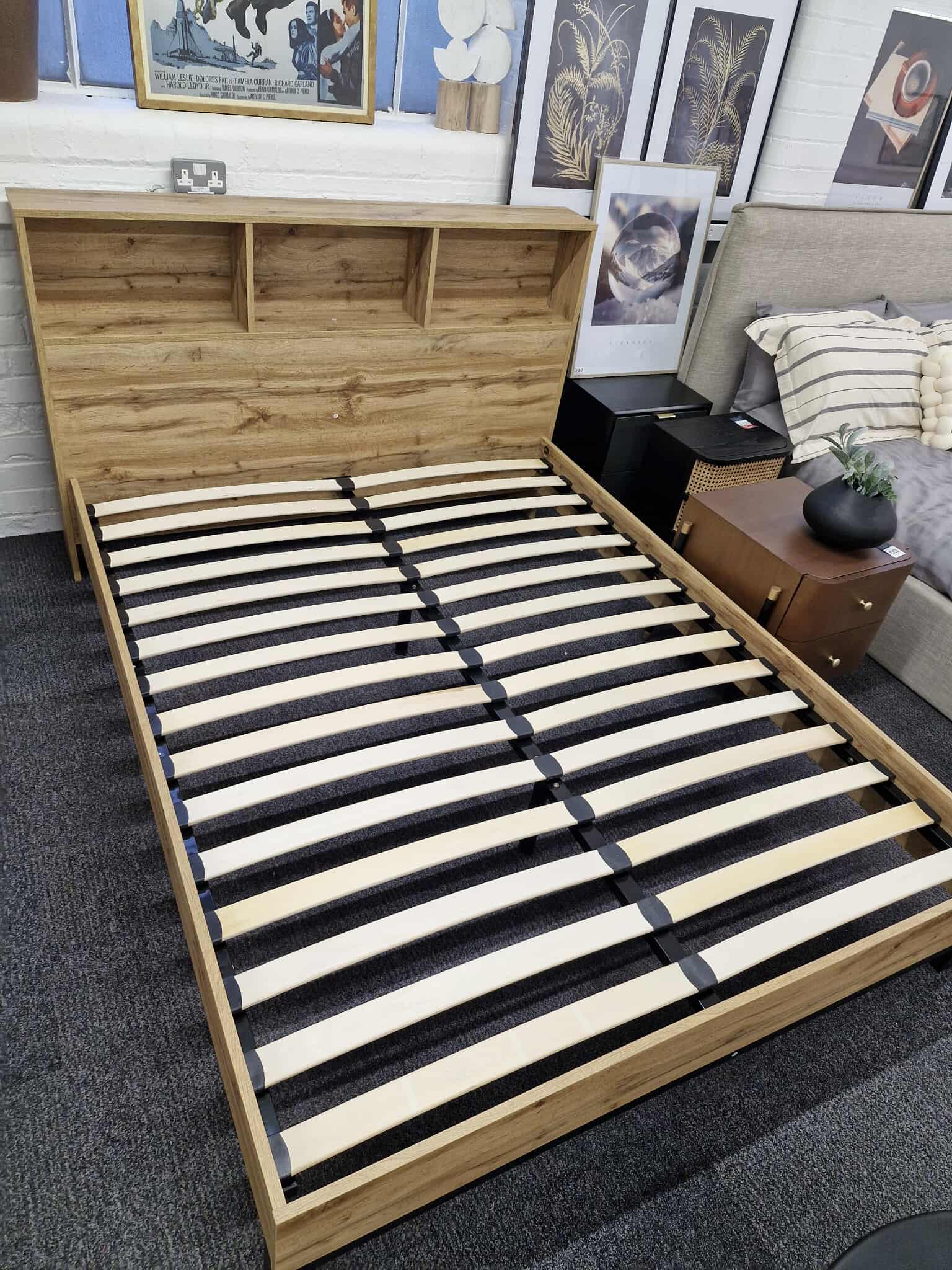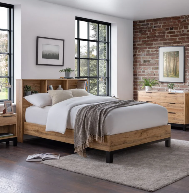 Oak Bookcase Headboard King Size Bed