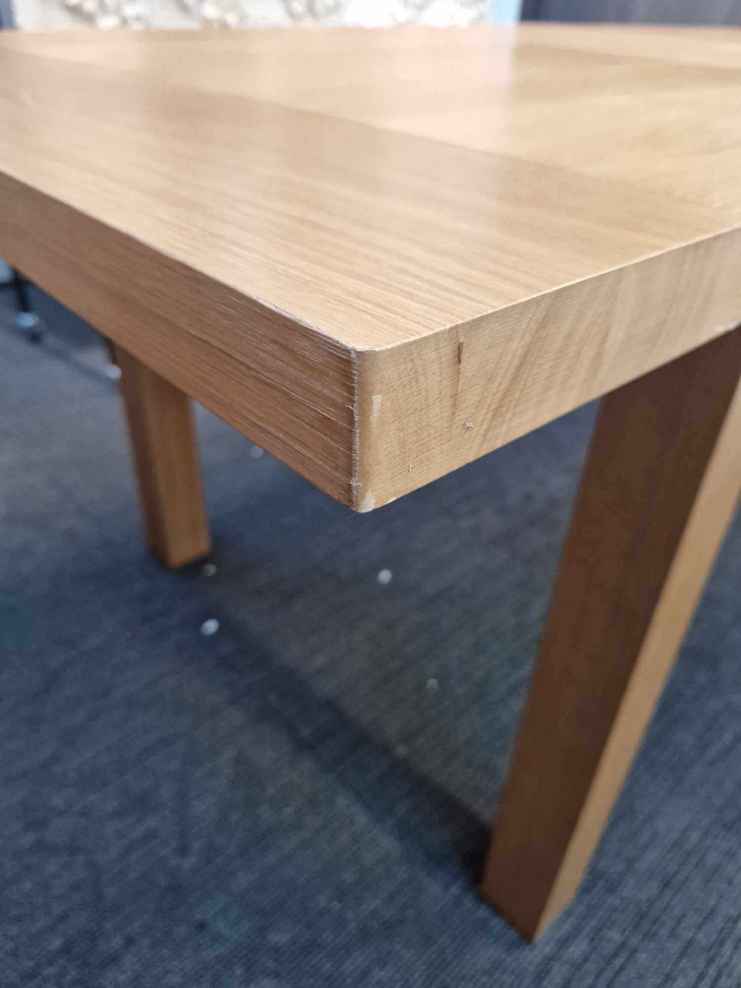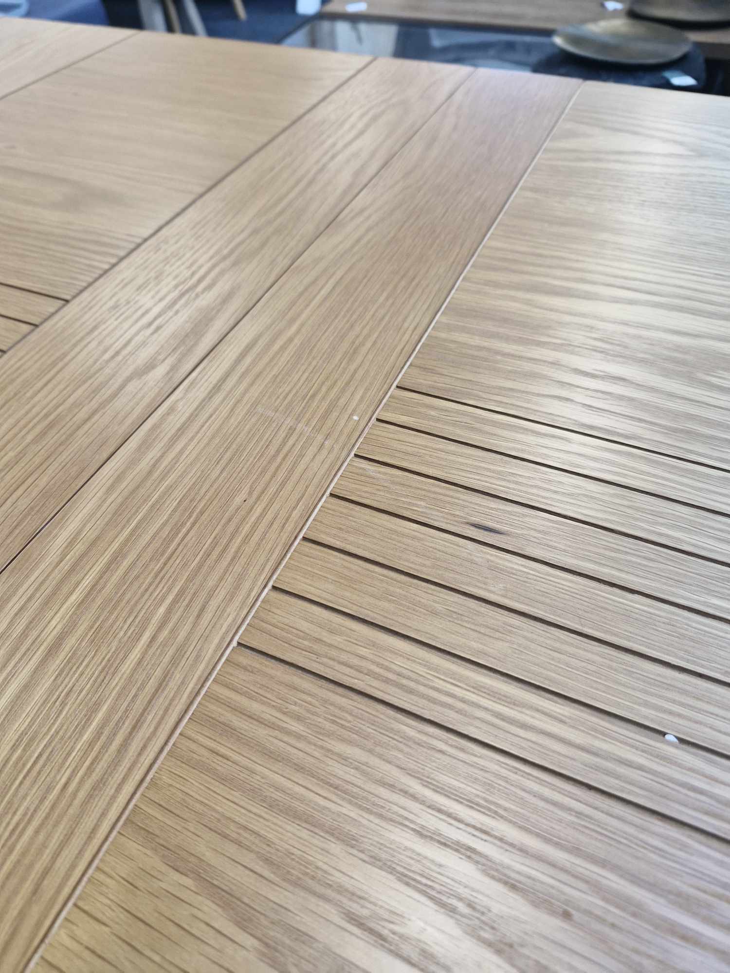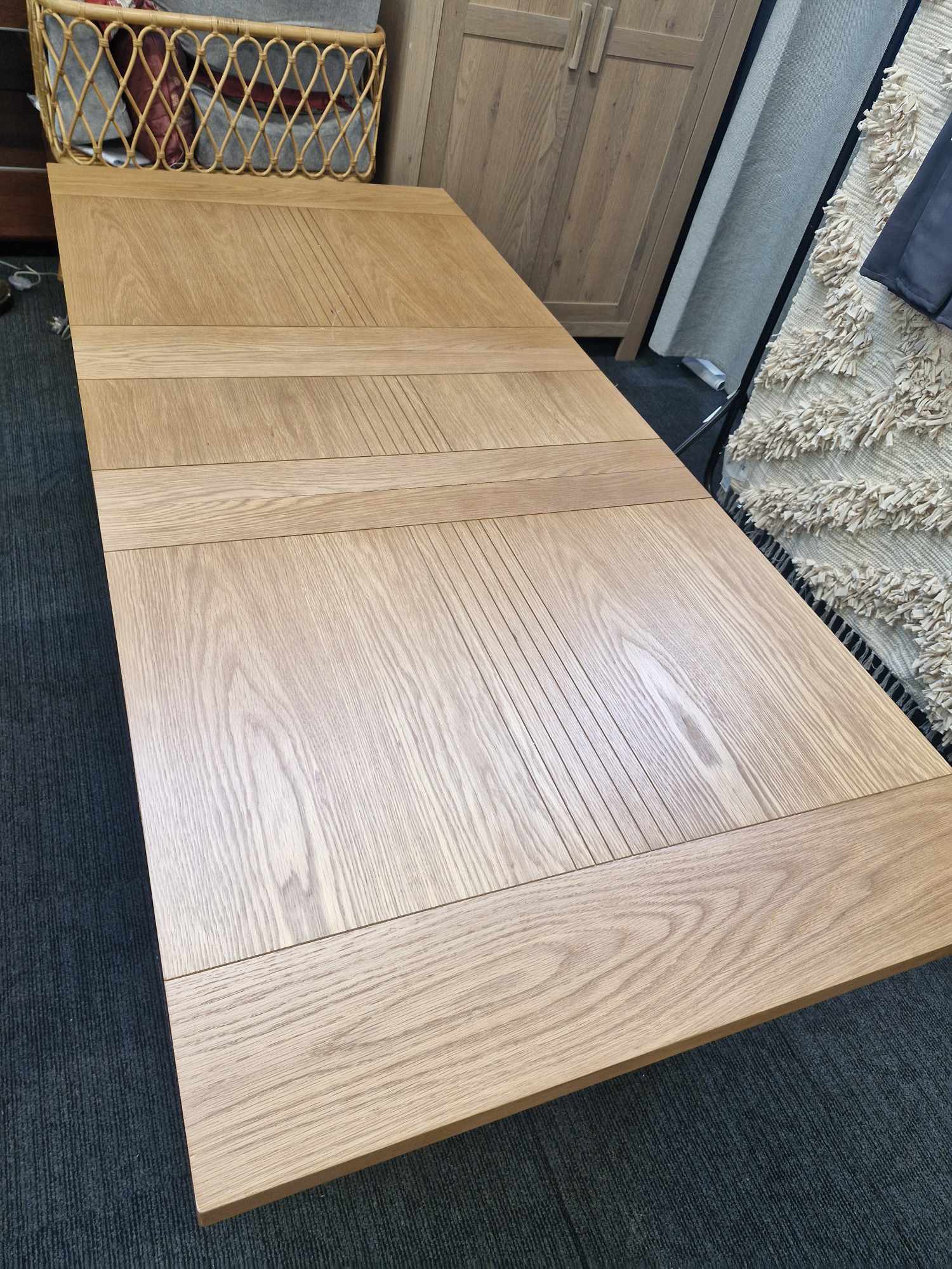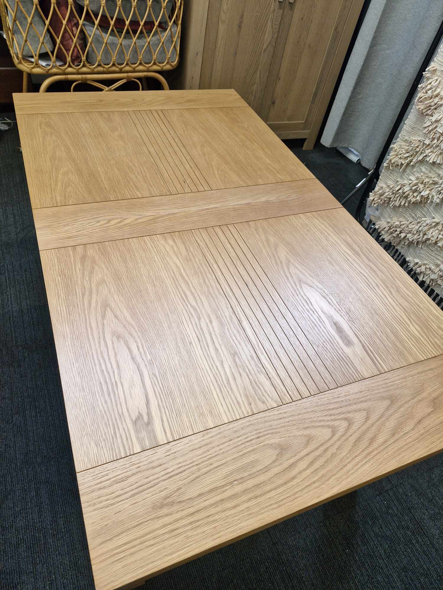 Extends to seat up to 8, with groove detailing on the top