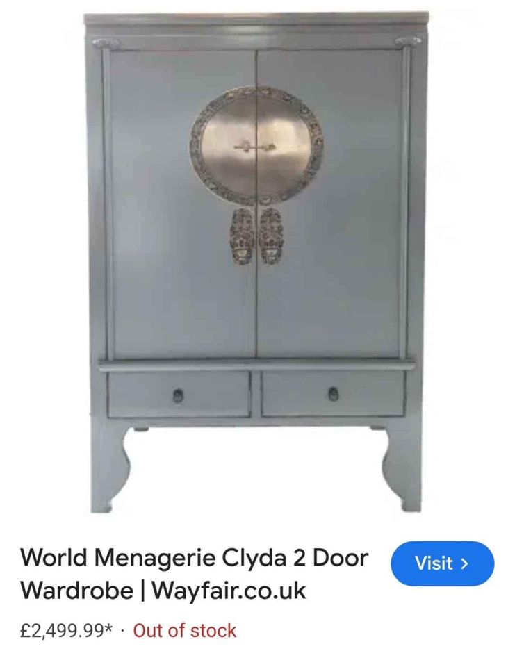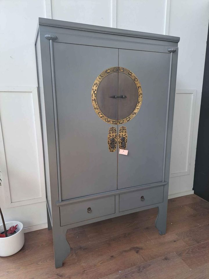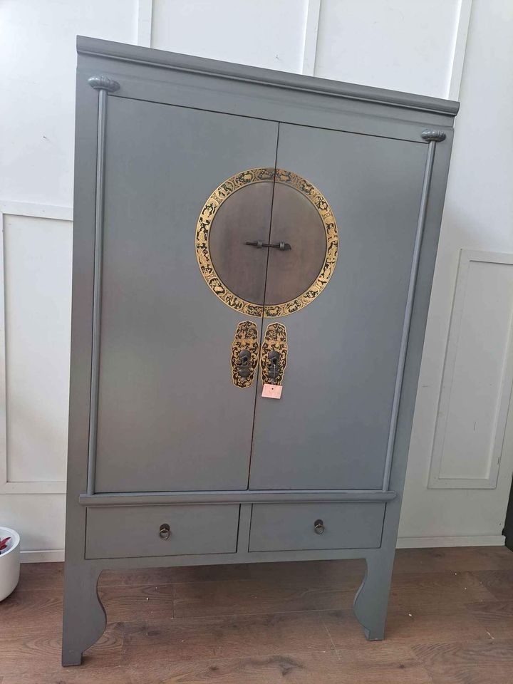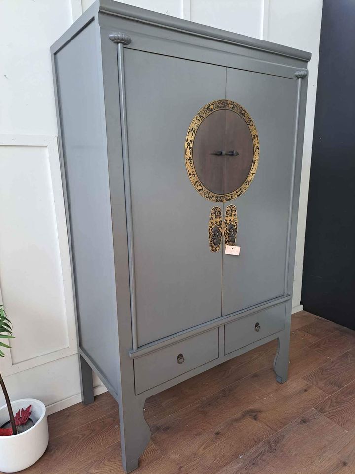 Oriental Wedding Cabinet Chinese wardrobe drink cabinet cool grey