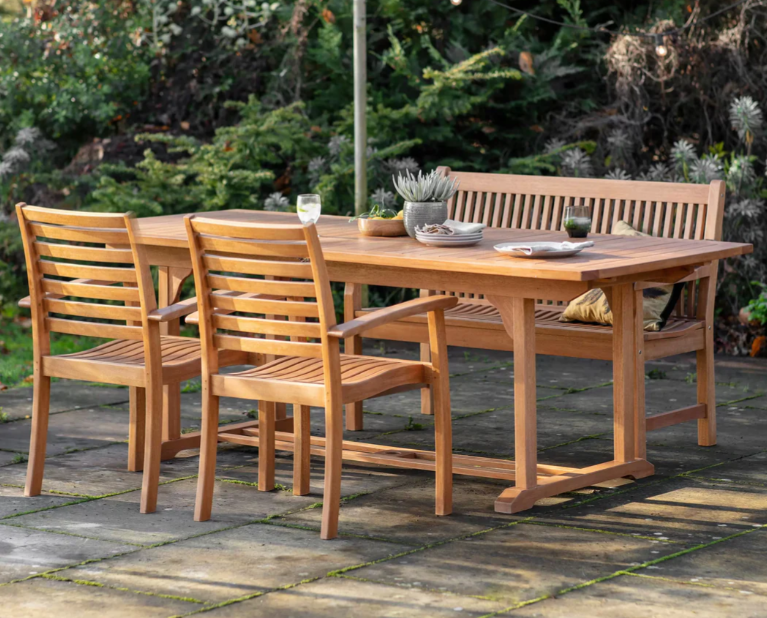 Great quality, crafted from eucalyptus wood. Eucalyptus wood is well-known for its moisture resistance, making it an ideal choice for outdoor furniture that can withstand various weather conditions