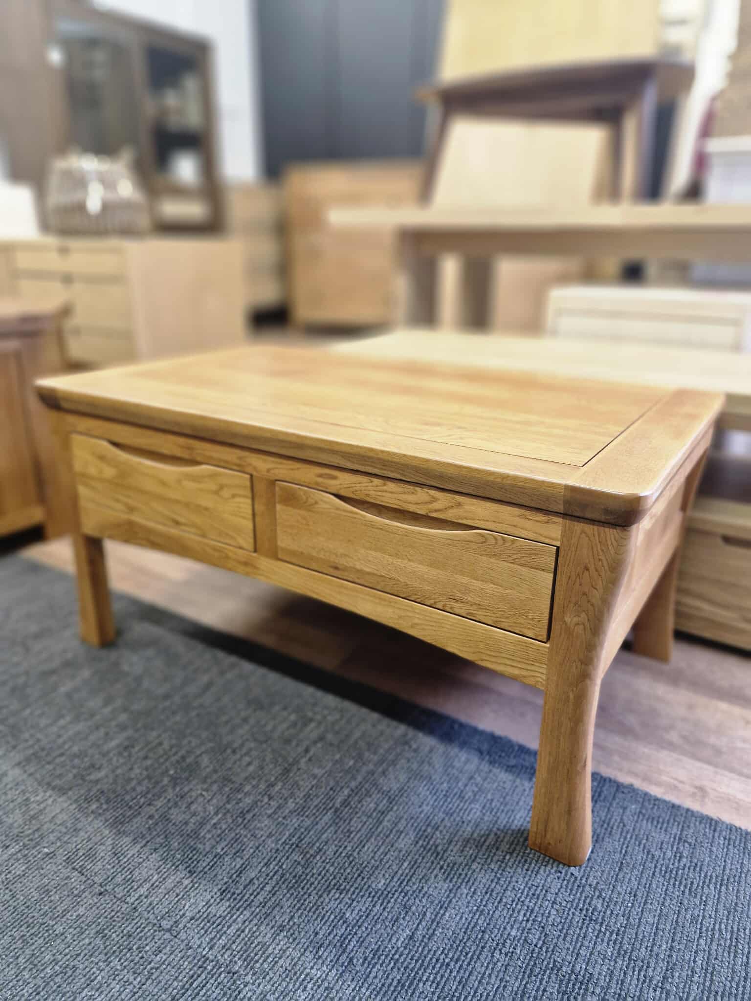 Rustic Solid Oak Coffee Table with Storage 4 Drawers