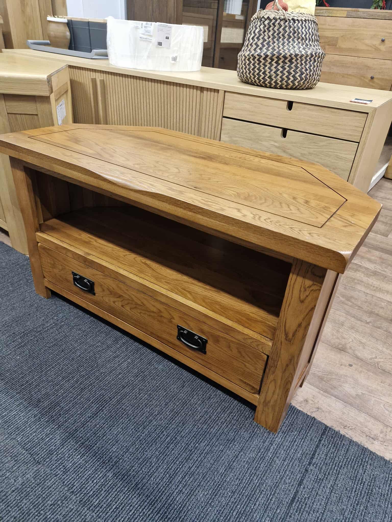 Rustic Solid Oak Corner TV Stand