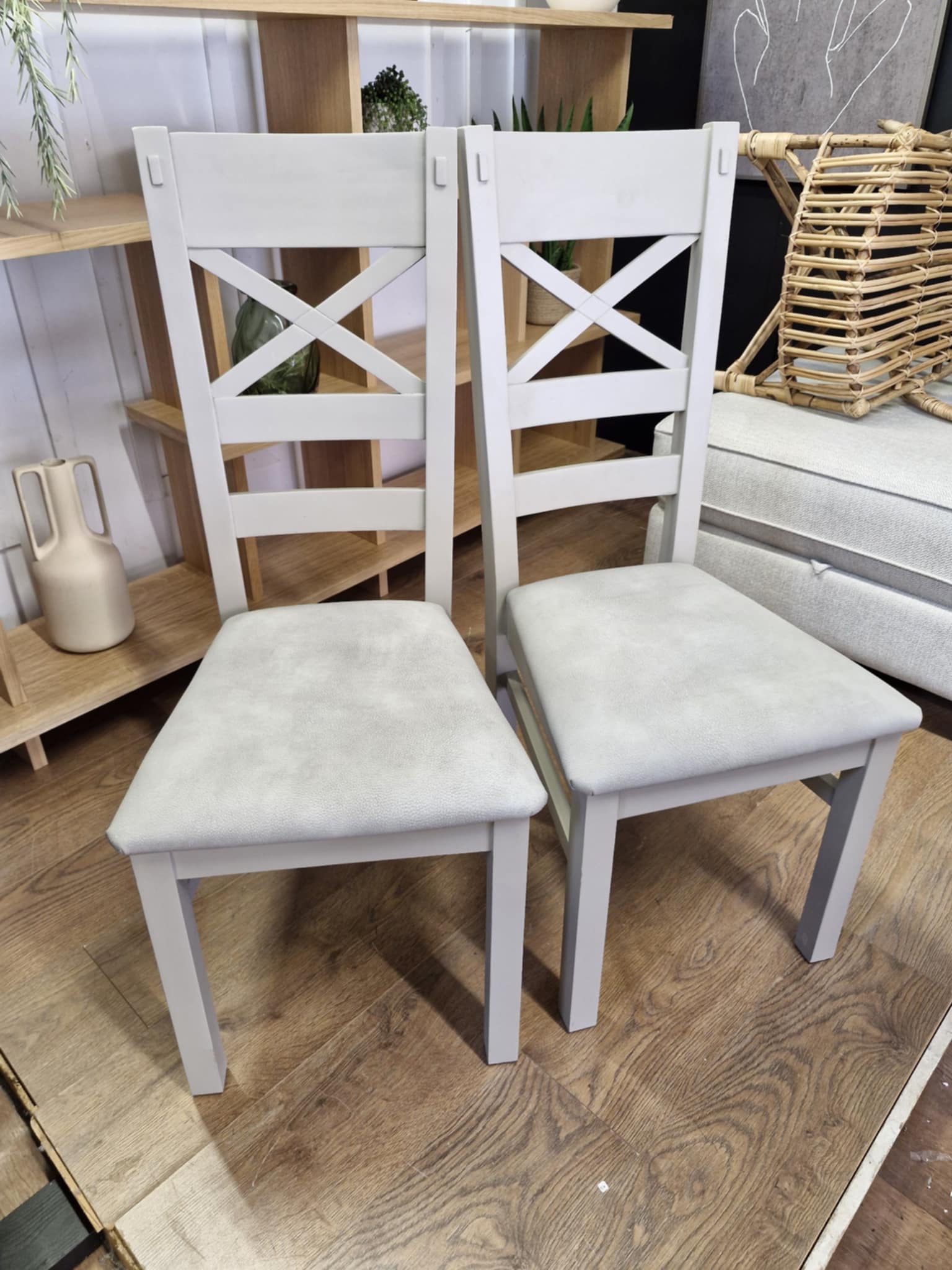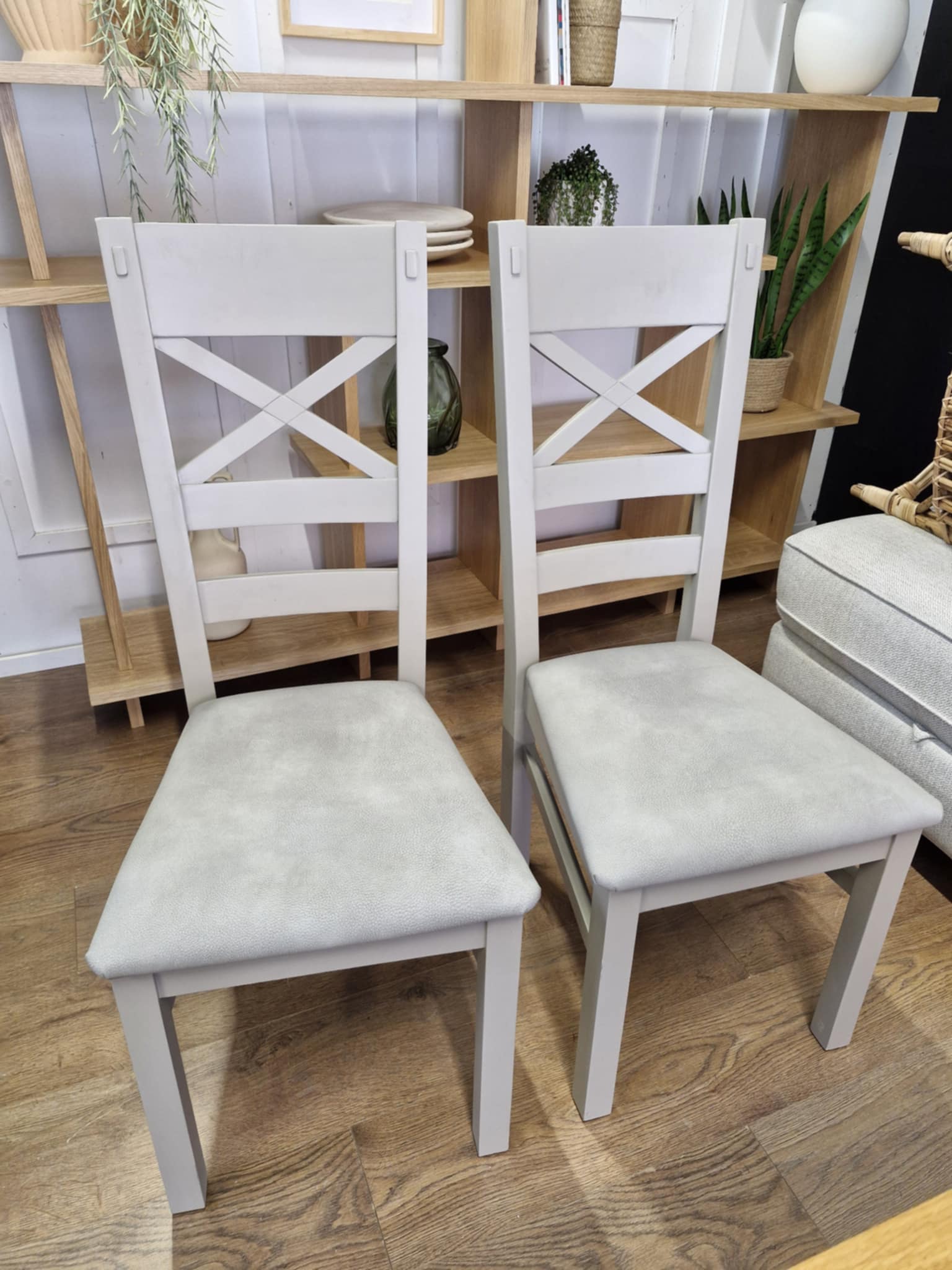 Set of 2 Dining Chairs / Solid Wood Grey and Padded / St Ives