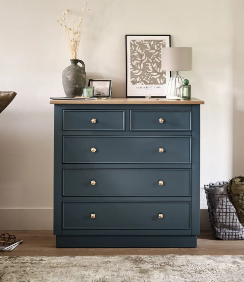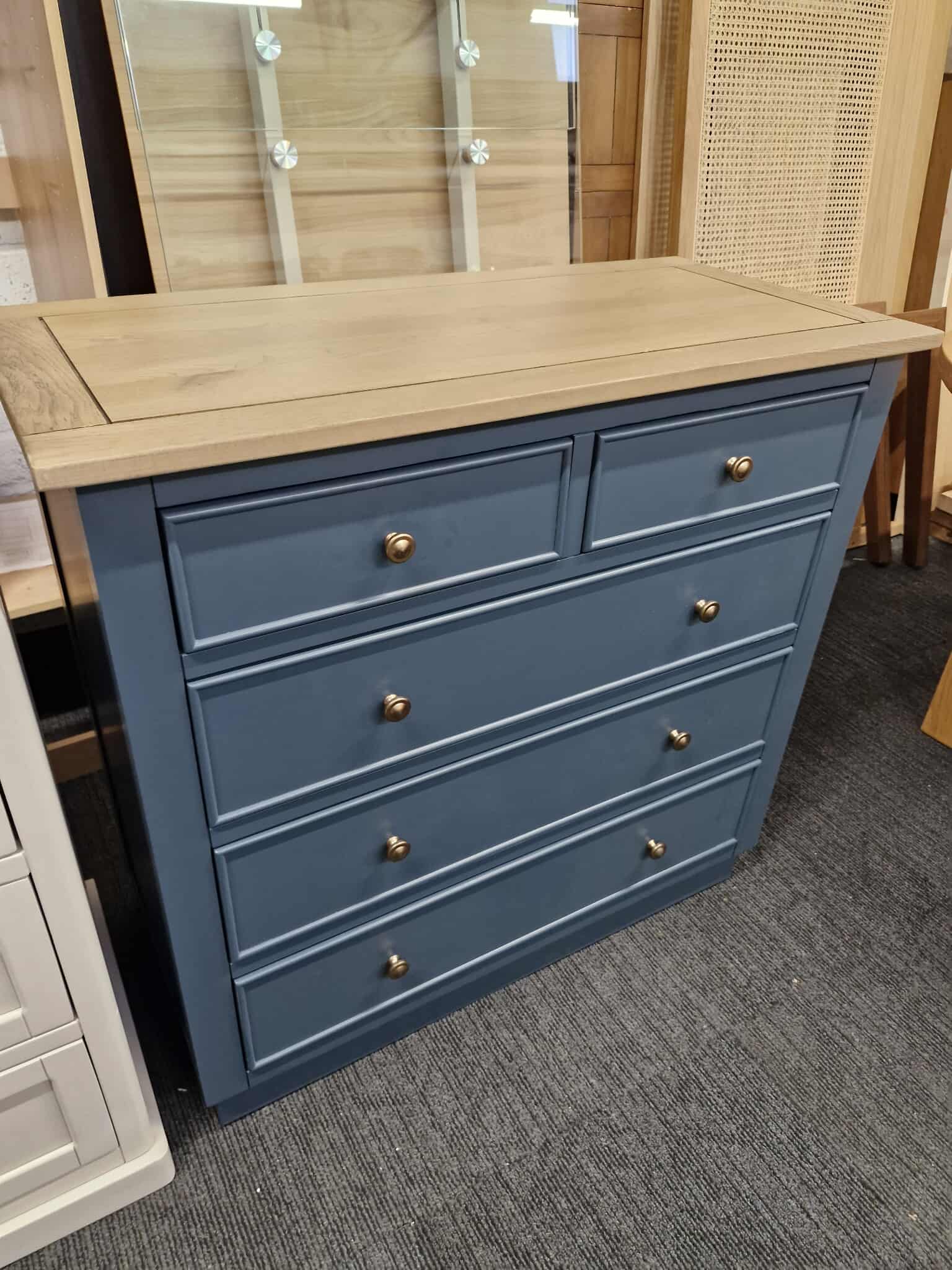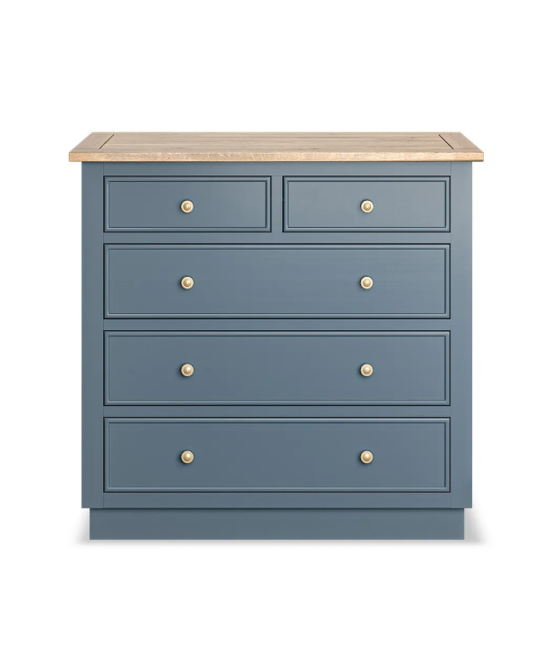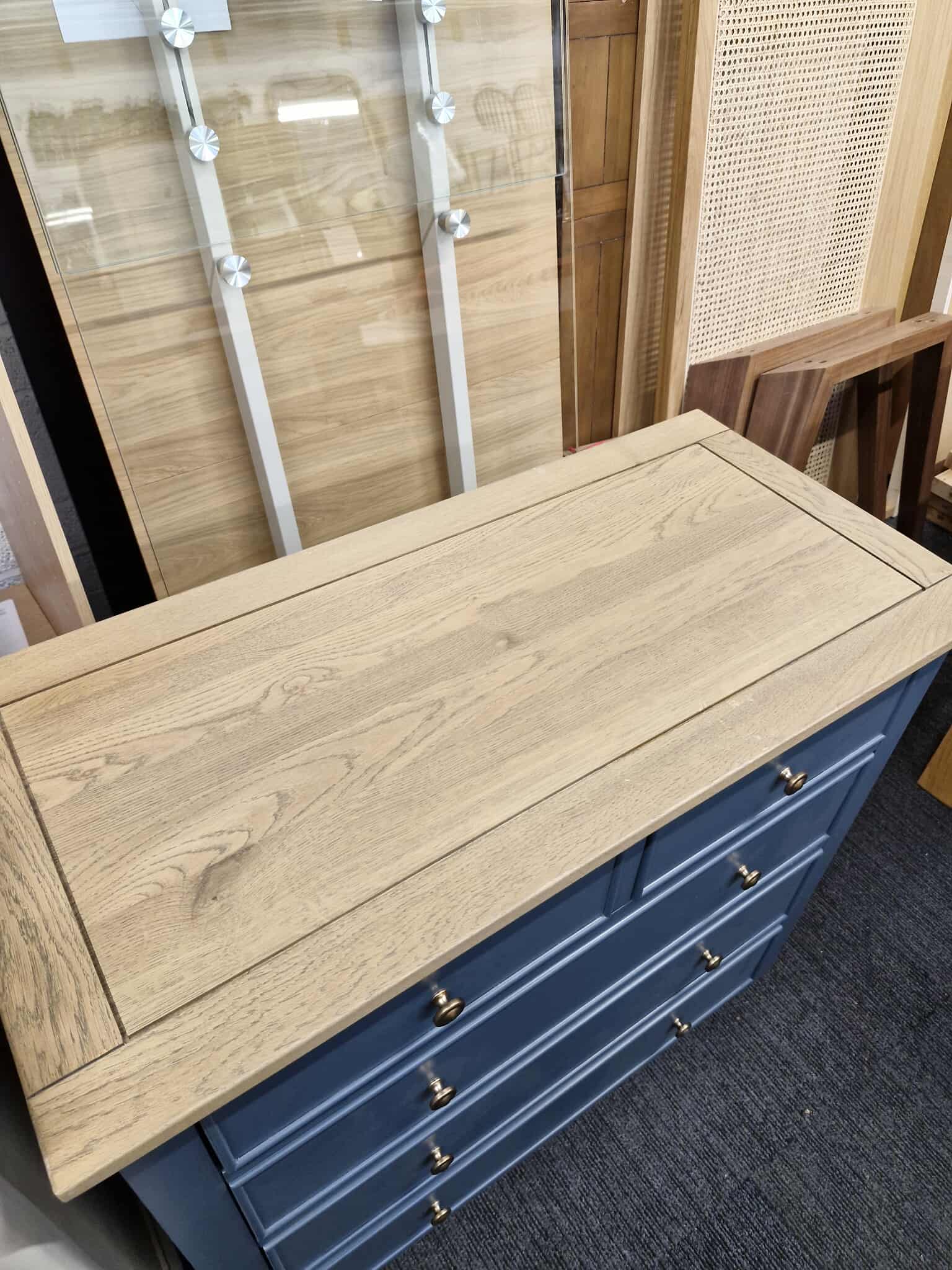 Solid Oak and Blue Chest of Drawers