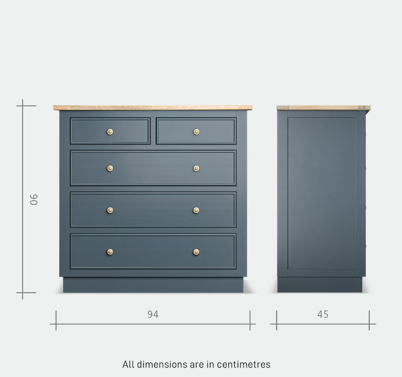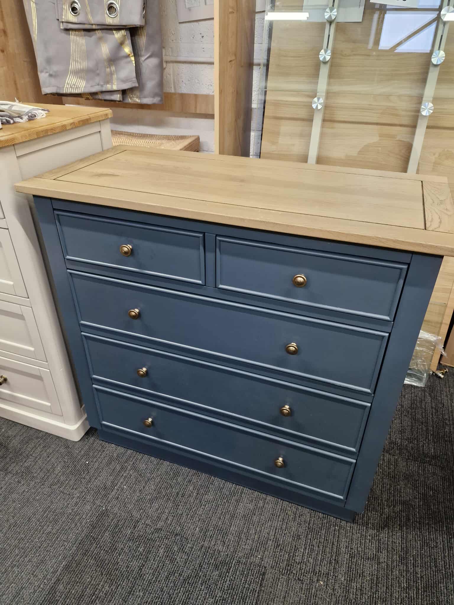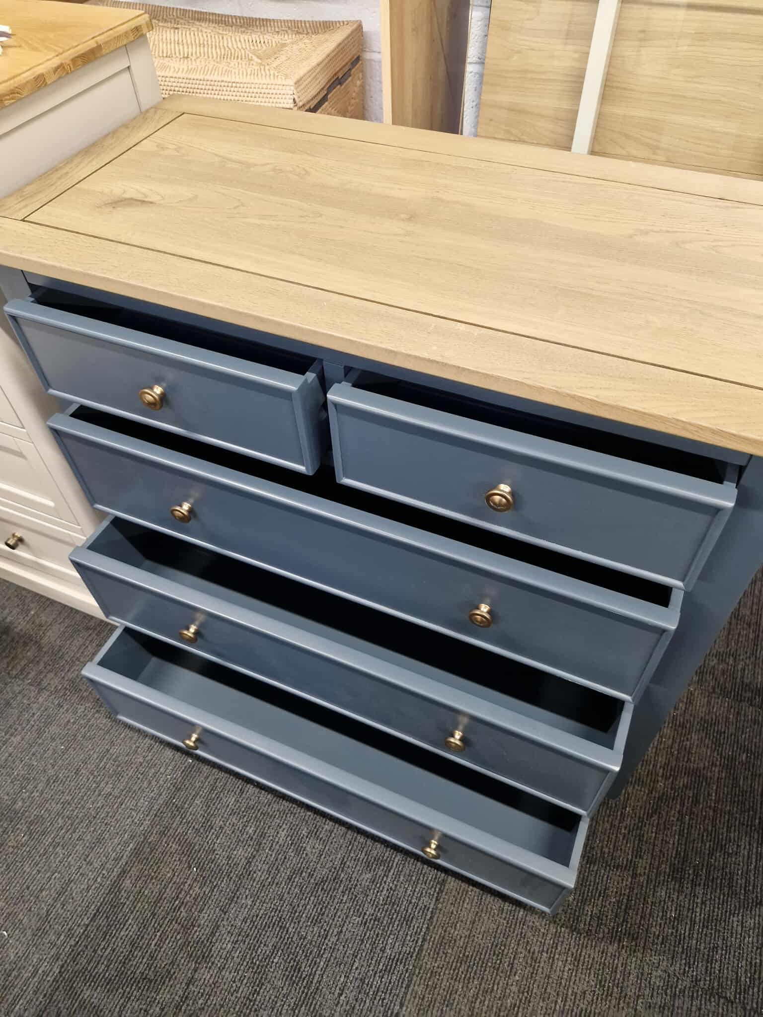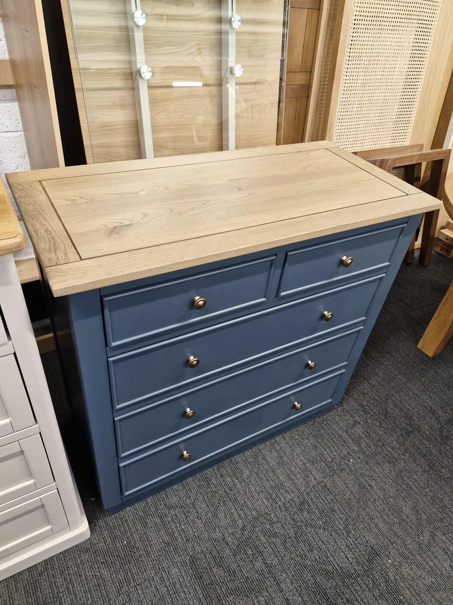 Solid Oak and Blue Chest of Drawers