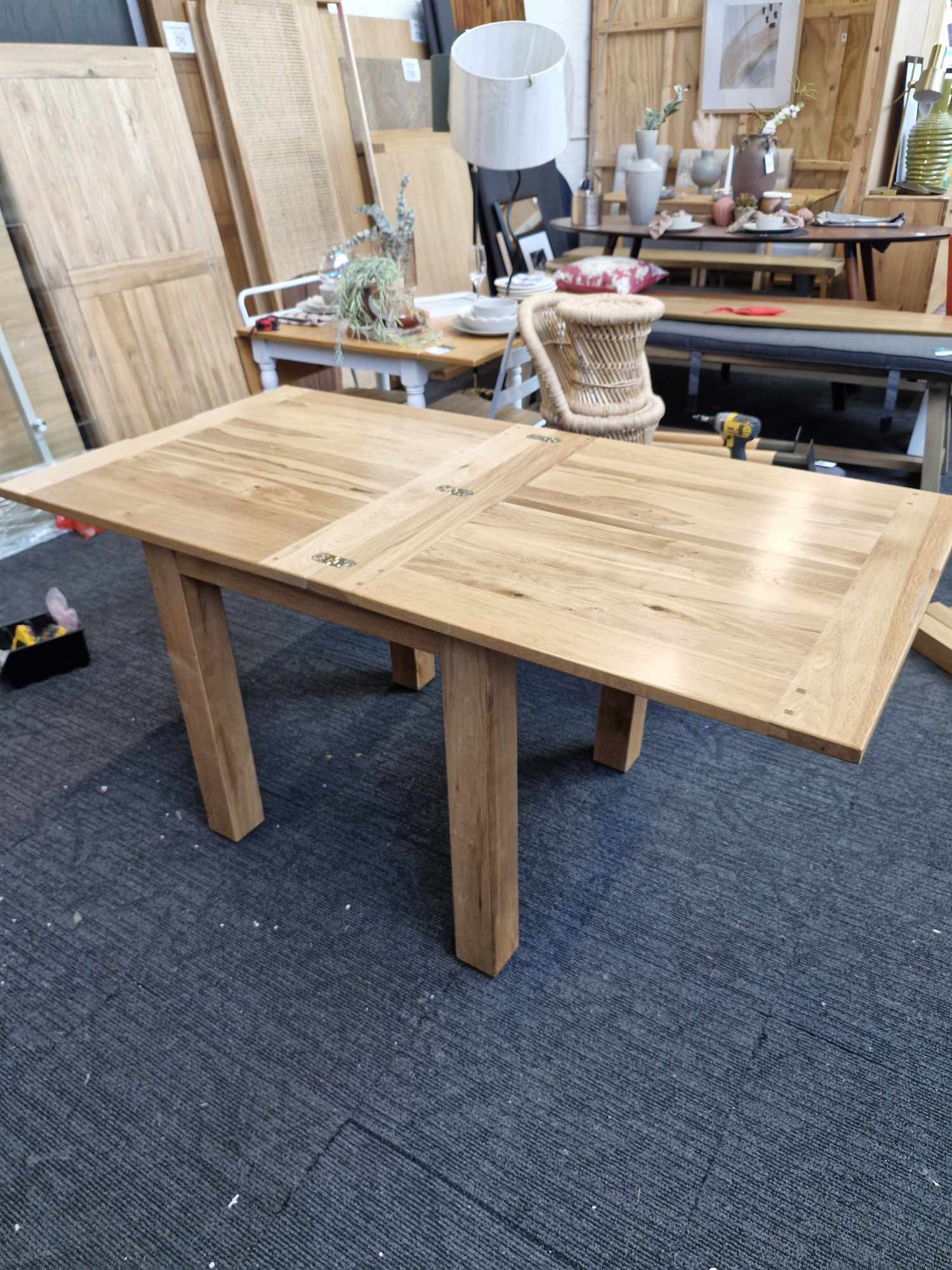Solid Oak Square Extending Dining Table / 4-6 Seater
