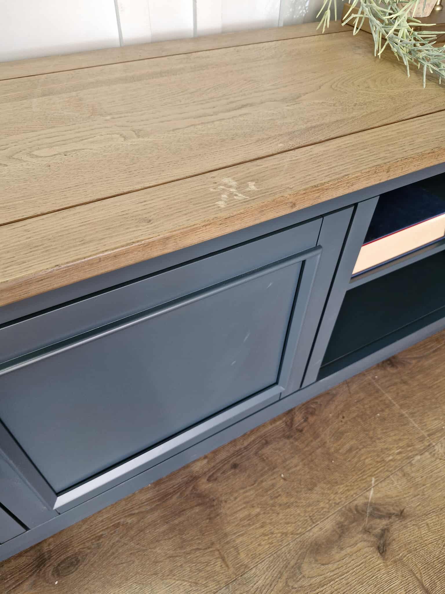 Solid Oak TV Stand / Smoked Oak and Ink Blue / Oak FurnitureLand Richmond