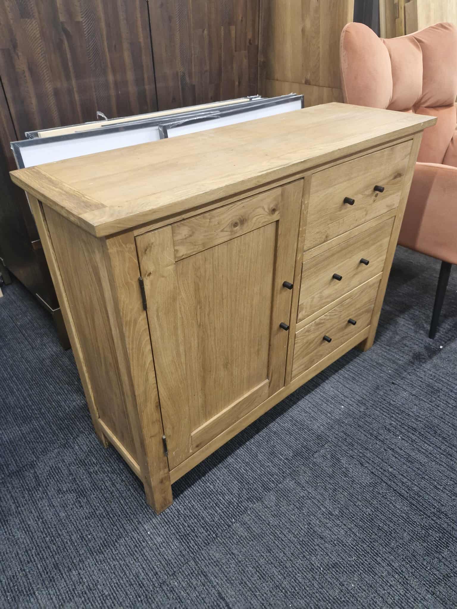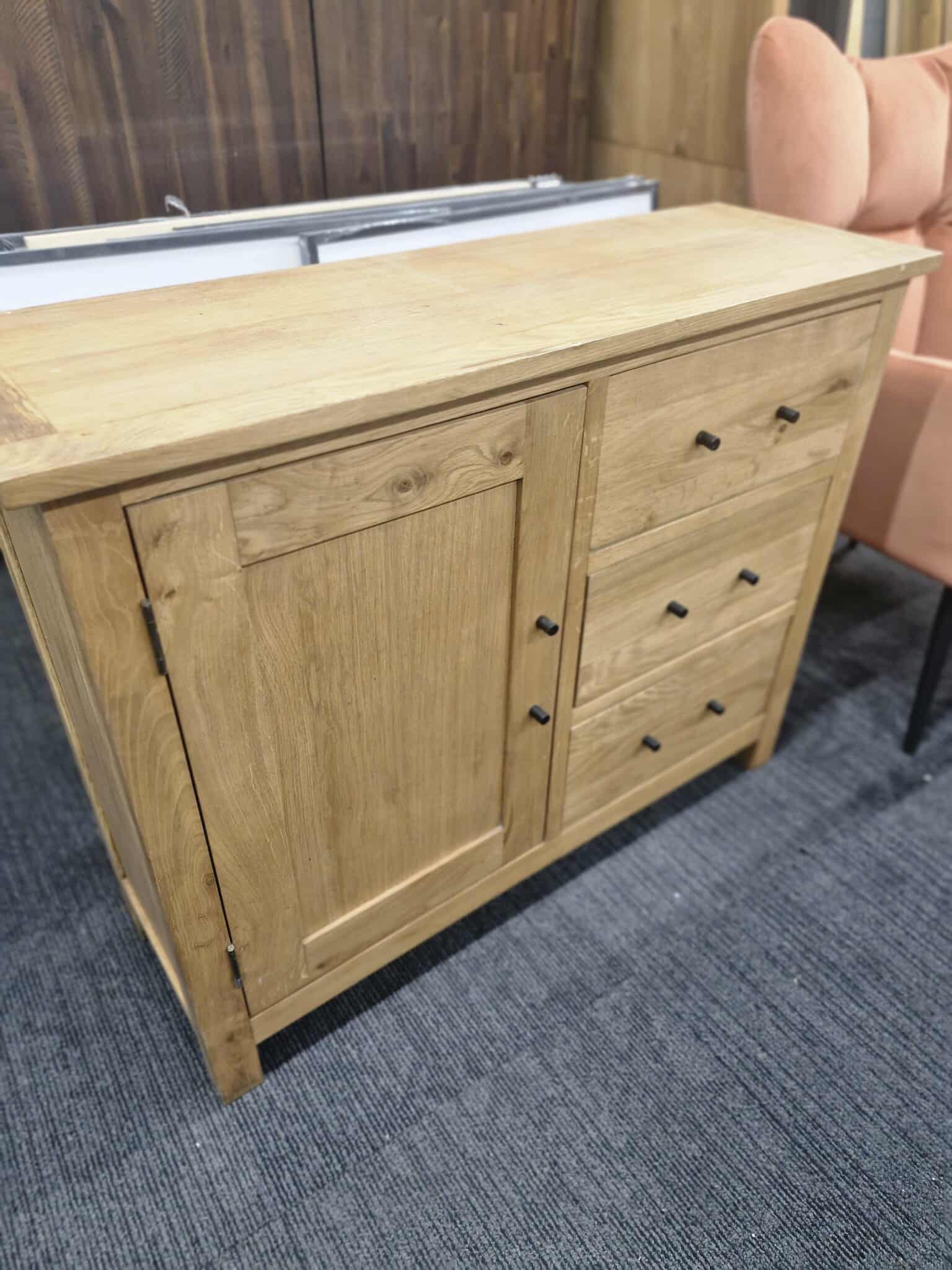 Solid Wood Cabinet with Door and 3 Drawers