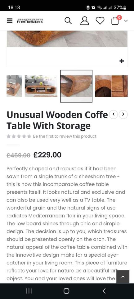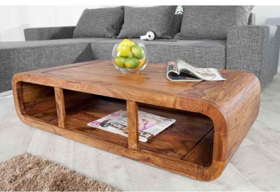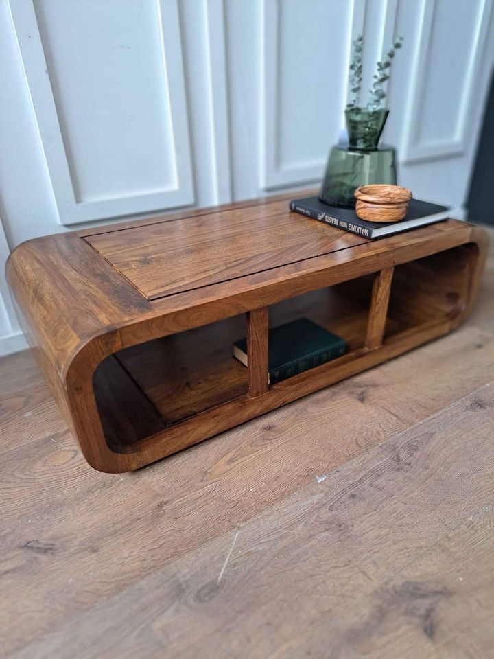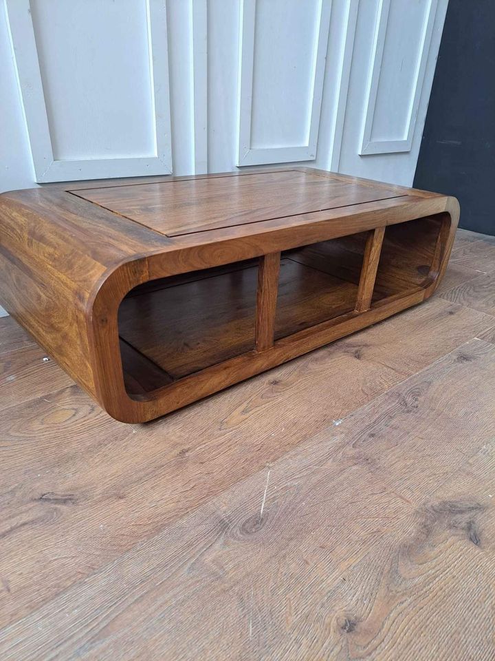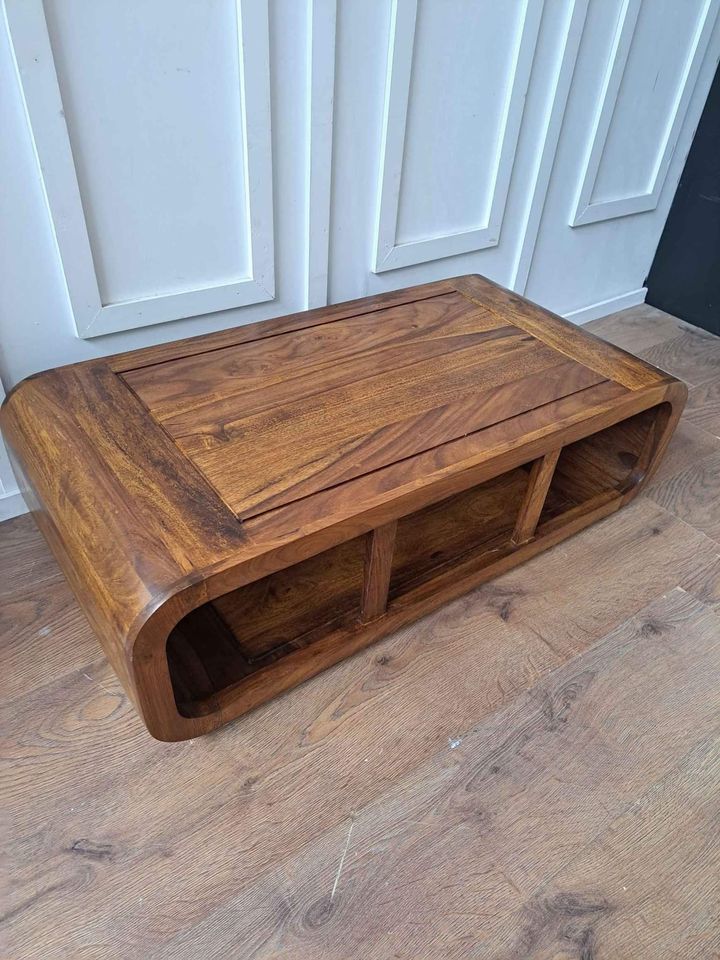 Solid wood coffee table with storage curved