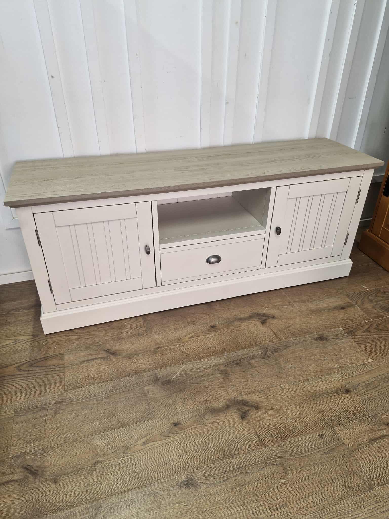 Solid wood grey large tv Stand unit / Oak Furnitureland Brompton