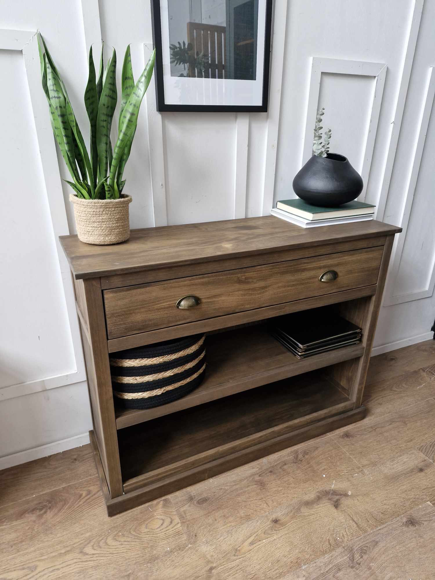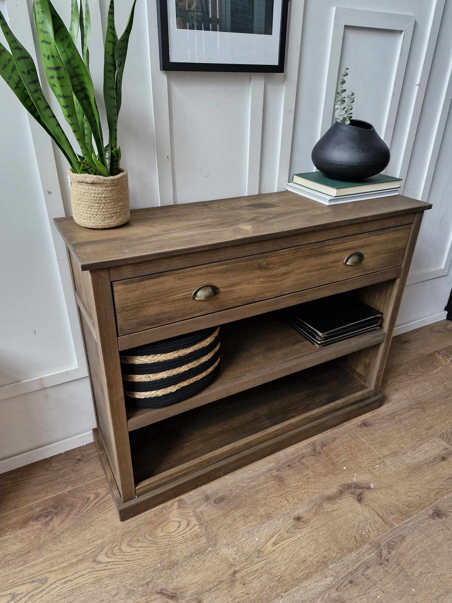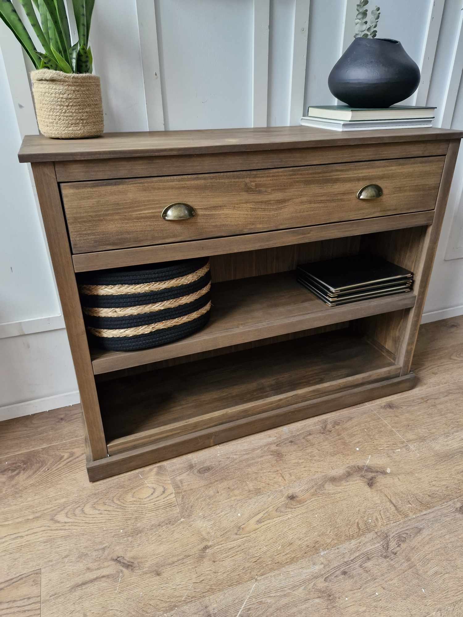 Solid Wood Low Bookcase with Drawer / Display Unit Dark Wood