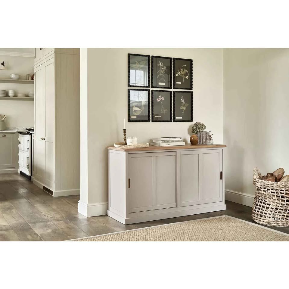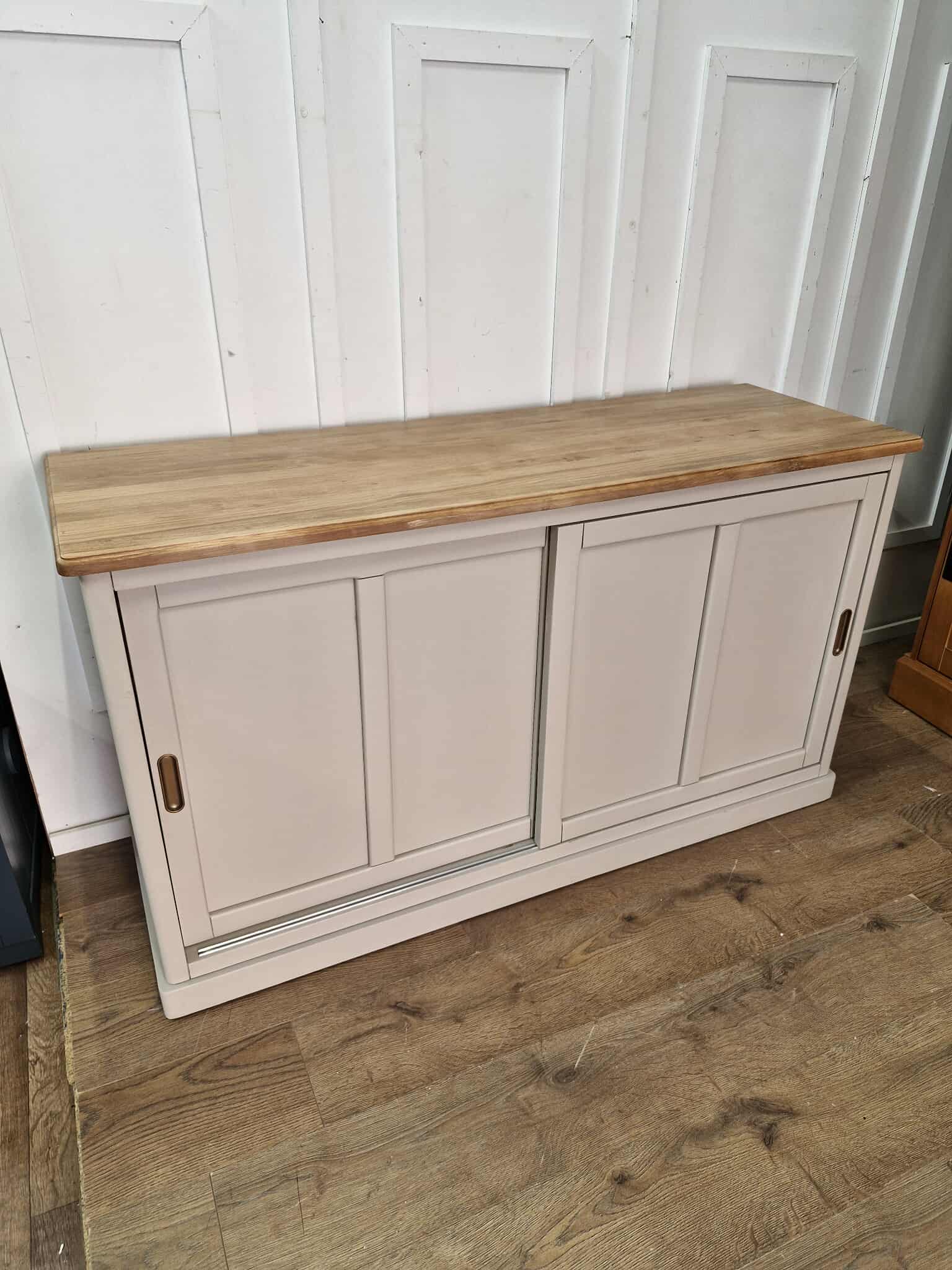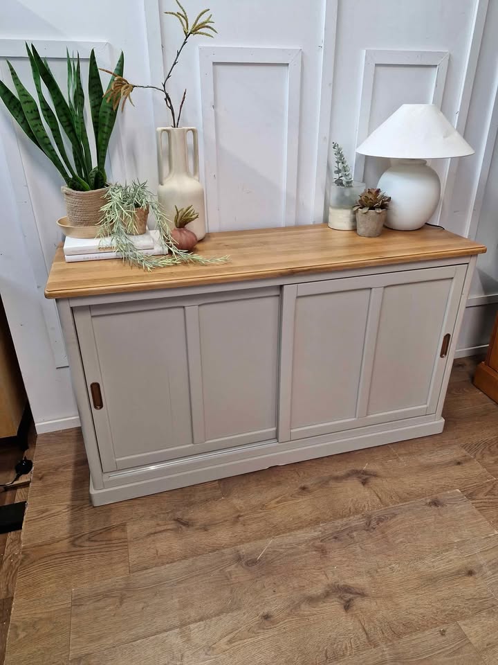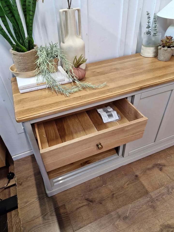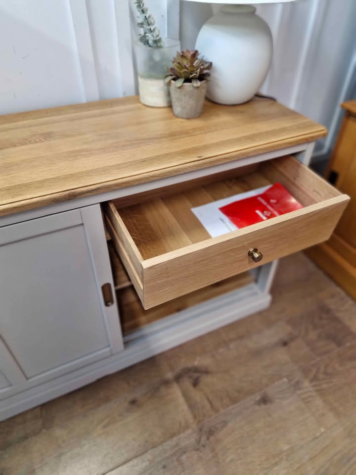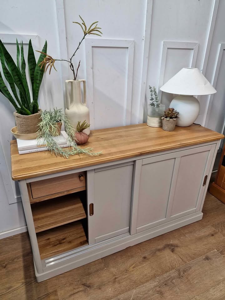 Solid wood sideboard with sliding doors grey stone snd oak / Oak Furnitureland Henley