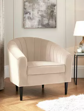 Velvet Armchair Light Beige / Biscuit and Black Legs