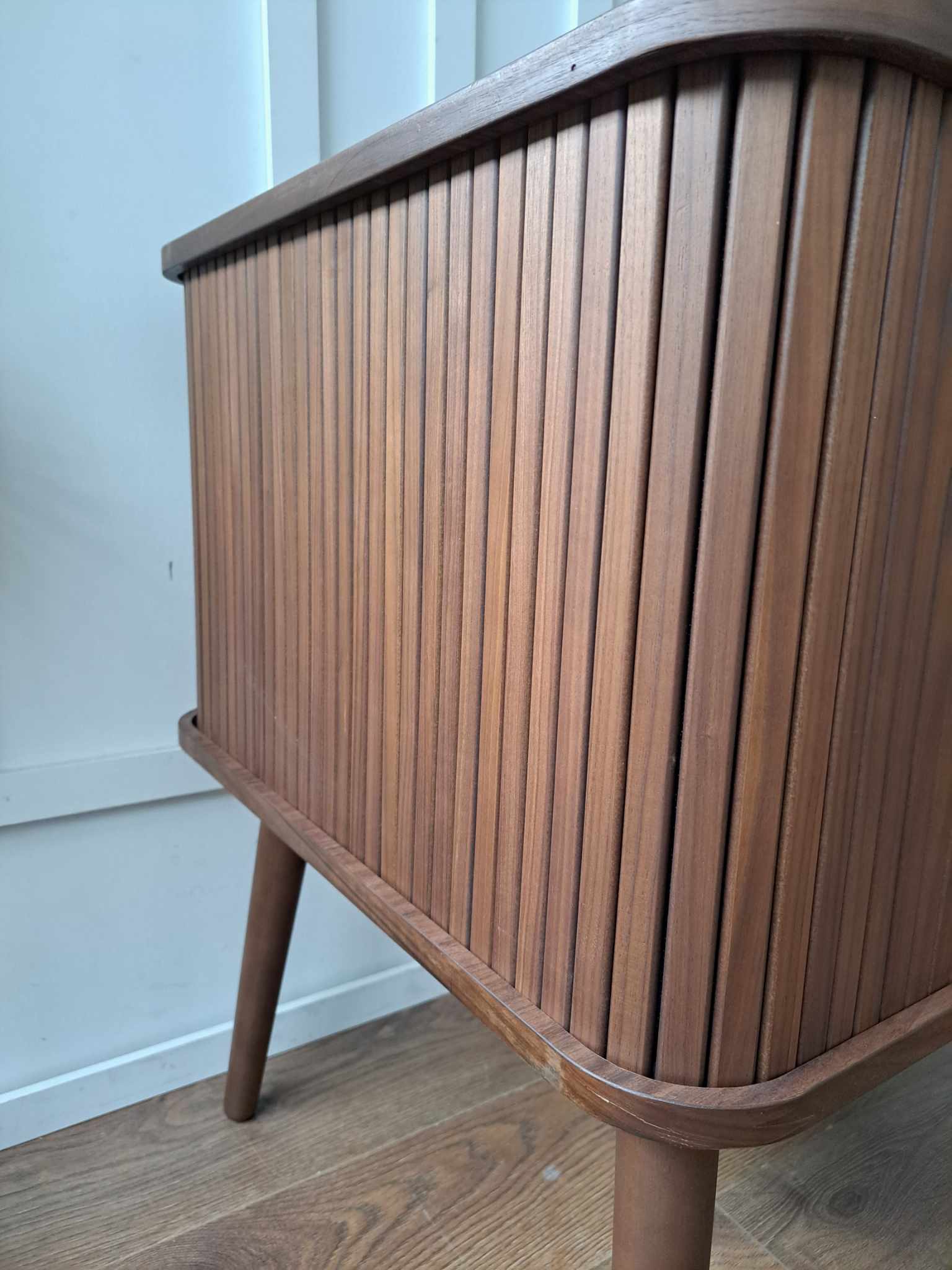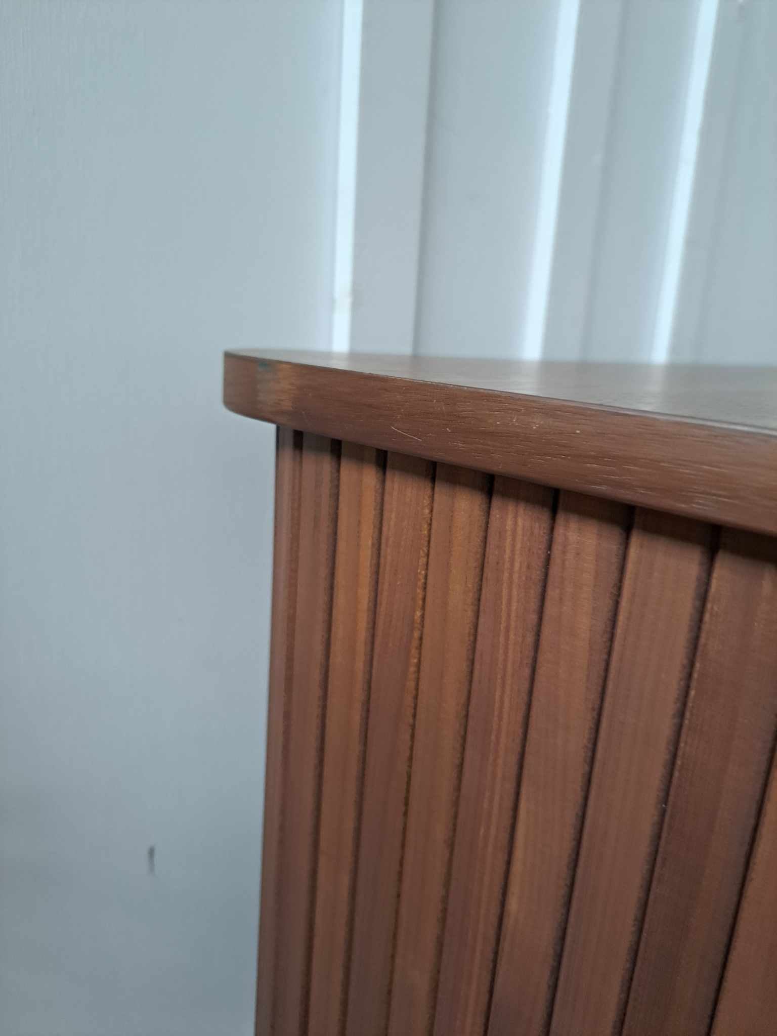 Walnut Desk with Slatted Sliding Door Storage / Grayson Desk