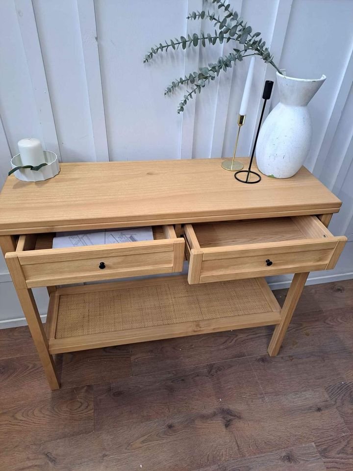 • 2 tiers: solid upper top, natural cane veneered lower top
